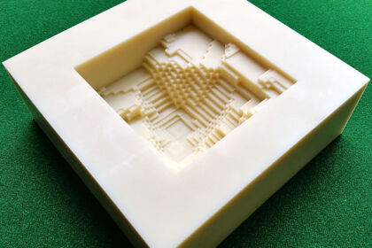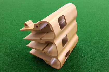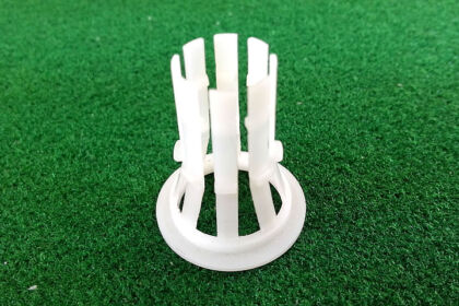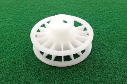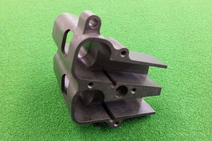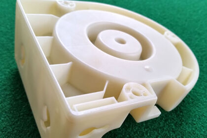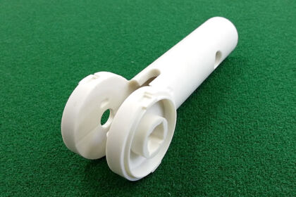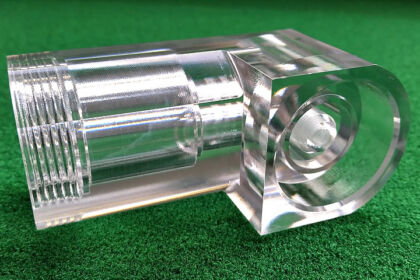 製品説明30mmのブロックからの削りだし一体加工です。温度変化による収縮が激しい材質ですが、工場内の温度を一定に保つことによって、収縮による寸法変化が出ない様に加工しております。